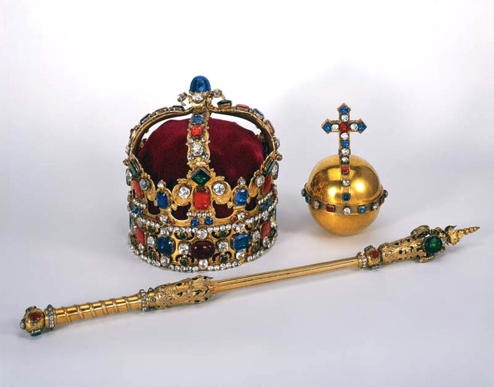 Zarekwirowane przez Hansa Franka znalazły się w prywatnych zbiorach generalnego gubernatora i gdy w 1945 roku wpadły w ręce Rosjan, ci nie dochodzili, kto jest ich legalnym właścicielem, ale wywieźli korony jabłka i berła jako "trofiejne" do muzealnych składnic Moskwy lub Leningradu. Do Polski wróciły dwa lata później niż skarby Niemieckiej Republiki Demokratycznej, bo dopiero w 1960 roku. Widać według władców ZSRR to bratnia Niemiecka Republika Demokratyczna, pierwsze państwo socjalistyczne na niemieckiej ziemi, bardziej niż buntowniczy PRL zasługiwała na ocieplanie wizerunku blaskiem klejnotów.