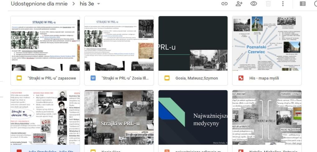 Prawie zapominam o zadaniu, ale reflektuję się. Stawiam na kreatywną powtórkę. Uczniowie w grupach tworzą wirtualne mapy myśli o strajkach w PRL-u i umieszczają na dysku Google, który muszą sami założyć. Spodziewam się oporu, ale odzew błyskawiczny. I pozytywny!