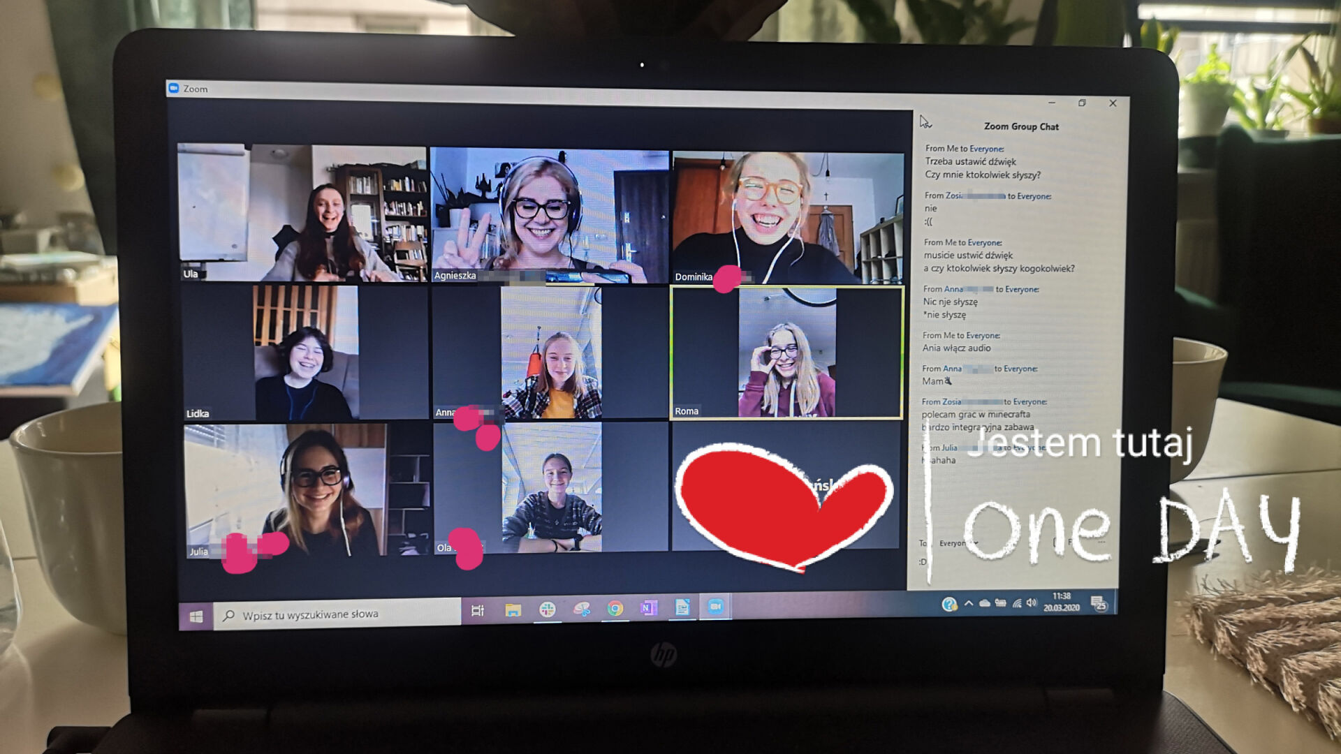Na grupie dziewczyny pytają, czy trzeba instalować aplikację, szukają właściwej. O 11 łączenie. Loguje się kilka osób. Nie działa dźwięk. Uruchamiamy czat, szukamy przyczyn. Okazuje się, że nie kliknęłam w audio. Cała filozofia. Dziewczyny opowiadają co słychać, ja przekazuję im najważniejsze informacje. Jedna z uczennic mówi, że jest w siódmym niebie, bo nie musi spotykać się ludźmi. Poza tym uczą się, malują, działają zdalnie przy swoich drużynach harcerskich. Zaczynamy ploteczki. Ale się stęskniłam! Ostatecznie łączy się 11 osób. Dwóm połączenia nie uciągnął internet. Spędzamy bardzo sympatyczny czas. Dziewczyna, która na początku mówiła, że się cieszy z pobytu w domu, podsumowuje "ale mi się poprawił humor". Jednak relacje to podstawa. Umawiamy się, że będziemy się łączyć regularnie. Brakuje nam kontaktu i rozmowy.